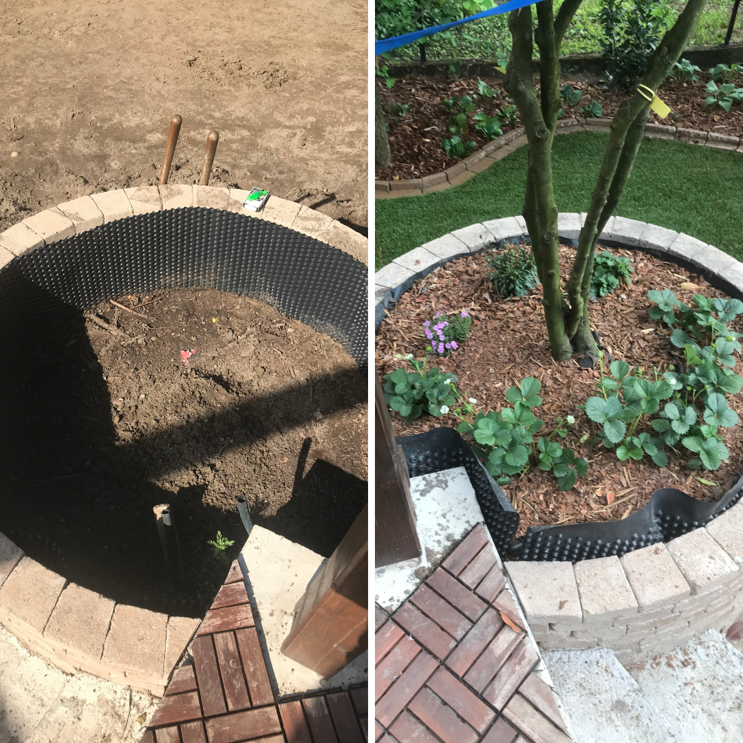 A kertfenntartás a mi feladatunk, így a kivitelezés befejezése óta is rendszeresen visszatérünk, hogy ápoljuk, formáljuk, sőt, bővítsük is a kertet – mindig a család aktuális élethelyzeteihez és igényeihez igazodva. A telepített automata öntözőrendszer biztosítja, hogy a növények és a gyep megfelelő vízellátása automatikusan, megbízhatóan történjen – időt spórolva, miközben megőrzi a kert frissességét.